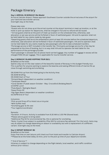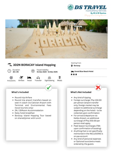 Discover Boracay's white-sandy beaches, pristine waters and fun attractions. Take the opportunity to relax on the beach or snorkel around to discover and admire the colorful aquatic fauna.