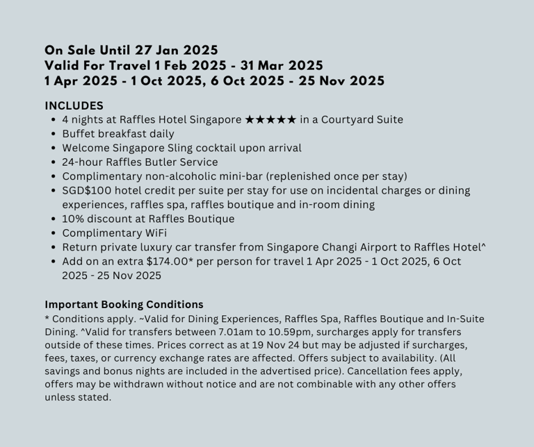 Raffles Singapore is undergoing a meticulous restoration to breathe new life into its iconic building. The hotel offers enhanced comfort, splendor, and a charming ambience, with newly opened bars, restaurants, courtyards, and social spaces. With 115 spacious suites, it offers modern amenities while retaining its colonial architecture.