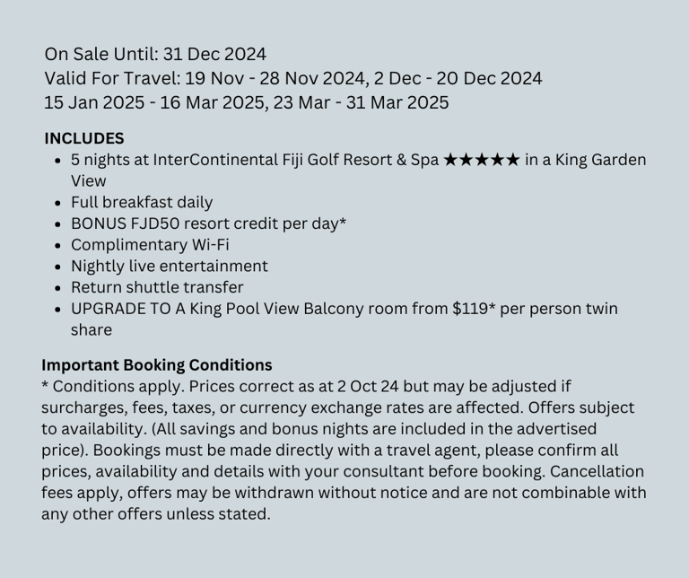 InterContinental Fiji Golf Resort & Spa offers tranquil retreats with stunning sandy beaches, stunning bay views, and warm, generous service in Fiji.