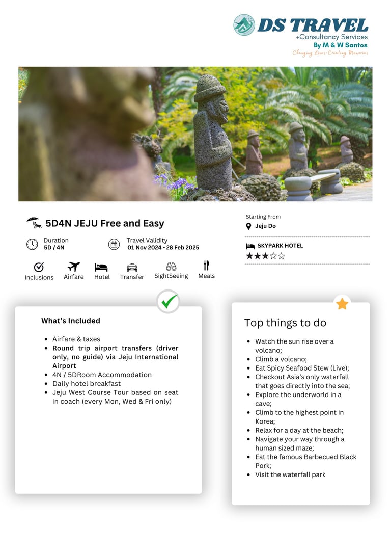 Enjoy visiting some Jeju Island's most notable attractions including the Folklore and Natural History Museum. Explore folklore relics, indigenous plants, and marine animals. Head over to Yongduam and view the dragon head rock, then visit the beautiful lake, Yongyeon.