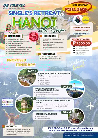 Stroll through Hanoi’s vibrant Old Quarter, rich with culture, history, and local flavors—then escape to Sapa’s misty mountains, where stunning rice terraces and serene landscapes await. From city buzz to peaceful highlands, this tour offers the perfect balance of adventure and relaxation.