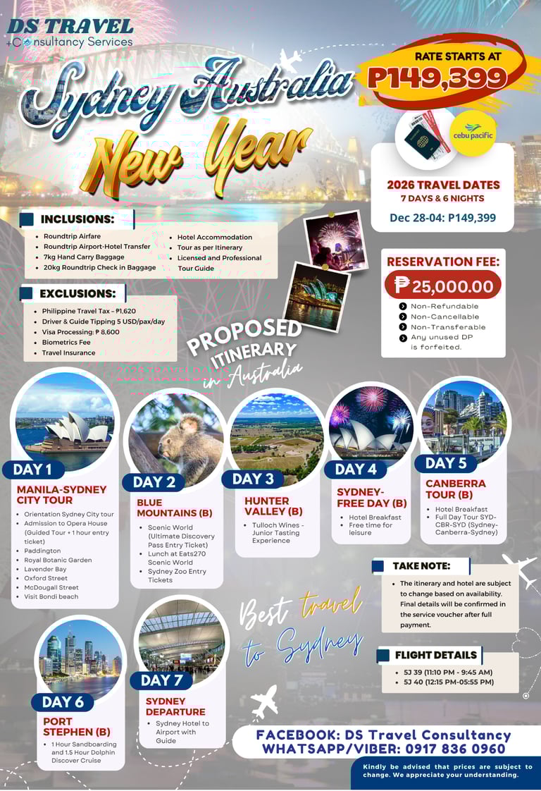 Experience an unforgettable New Year celebration in Sydney, featuring world-famous fireworks over Sydney Harbour Bridge and the stunning skyline near Sydney Opera House. Enjoy vibrant city tours, coastal views, shopping, and festive events as the city comes alive with energy and celebration.